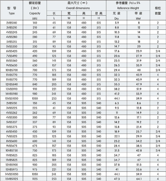 主要用途:为替代进口,本公司研制了符合英国BS标准要求的VBS系列牵引用铅酸蓄电池,为国内进口电动叉车和电动牵引车配套,也可用于其他电动牵引车辆,本产口还可用于出口。